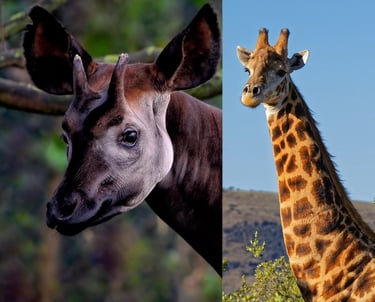 Did you know okapis and giraffes are the only two living members of the Giraffidae family? These remarkable relatives diverged from a common ancestor 11.5 million years ago.